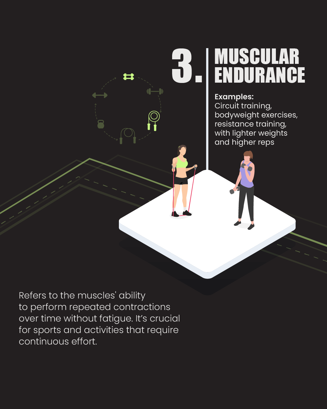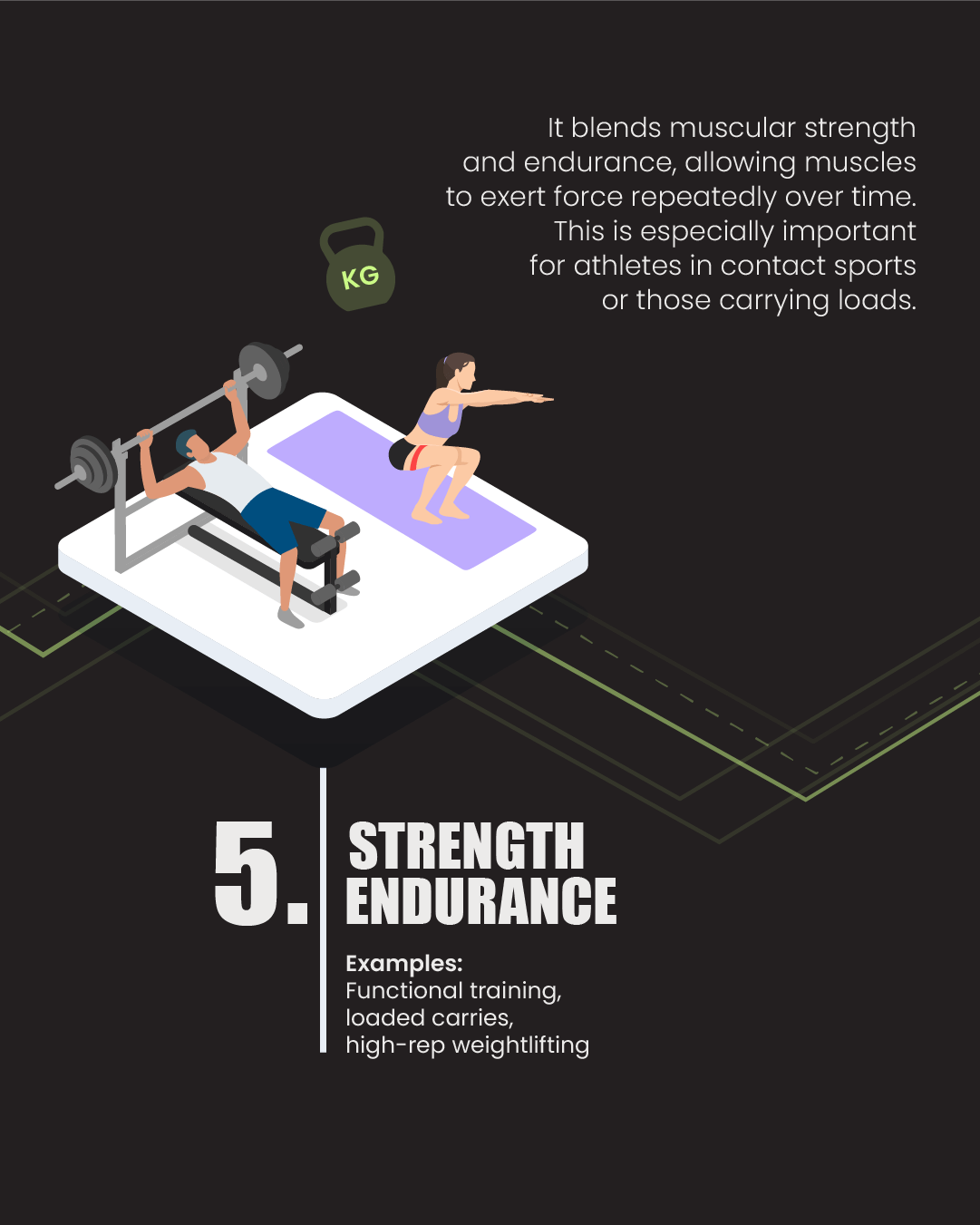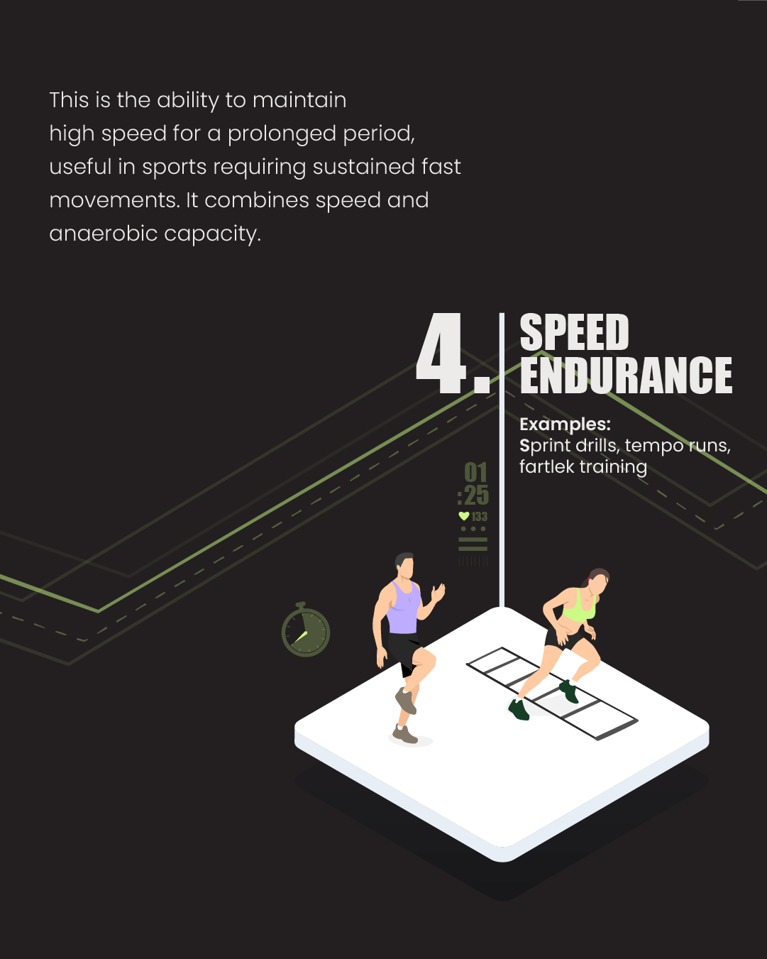 Endurance training consists of six key components: aerobic and anaerobic endurance, muscular and strength endurance, speed endurance, and mental endurance. These develop the body’s ability to sustain various physical efforts—from low to high intensity—over time. Together, they enhance cardiovascular health, muscular stamina, speed retention, and mental resilience. Each plays a unique role in improving overall performance and delaying fatigue.