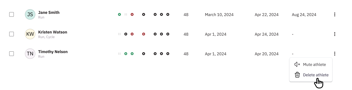 Mark athletes as inactive if they are on a break and stop receiving notifications until you are ready to reactivate them with a click!